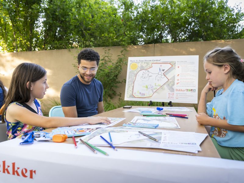 Our drawing station was a place for families to work on our Drawing Kits. These Drawing Kits allow community members to illustrate what they would like to see the Children’s Fantasy Garden look like. These Drawing Kits are one of our core methods of receiving community input during the pre-design phase.